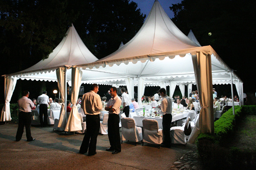 6mX6m pagoda tent is middle size one. It can hold more than 30 people. Customers usually use it in party, outdoor wedding, conference hall, etc.